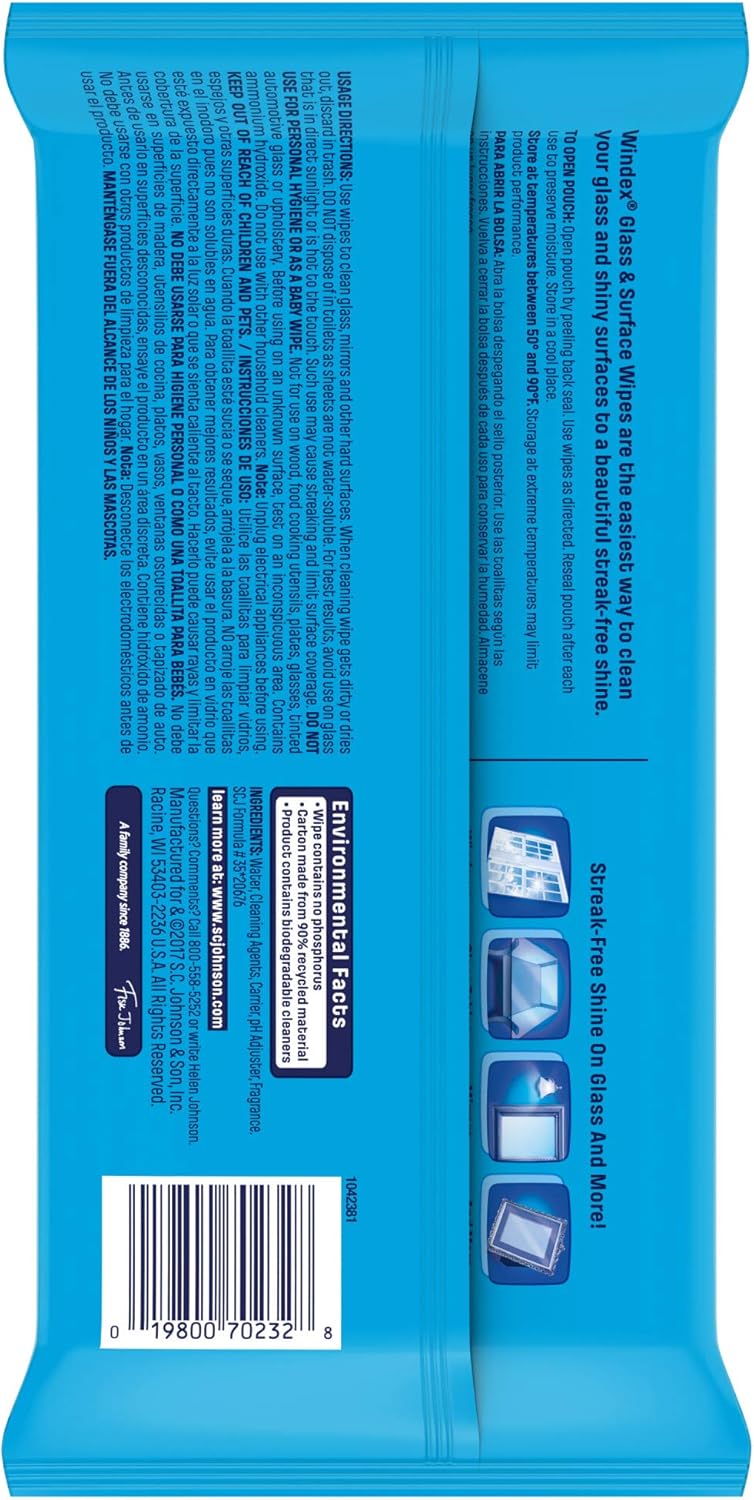 Windex Original Wipes offer an easy way to get a streak-free shine almost anywhere. Add a little sparkle to your life any time grab a wipe for quick touchups or to clean smaller glass surfaces like framed photos or mirrors. Give Life a Sparkle with Windex cleaners! Use to clean: bathroom mirrors, glass microwave doors, picture frames and more.