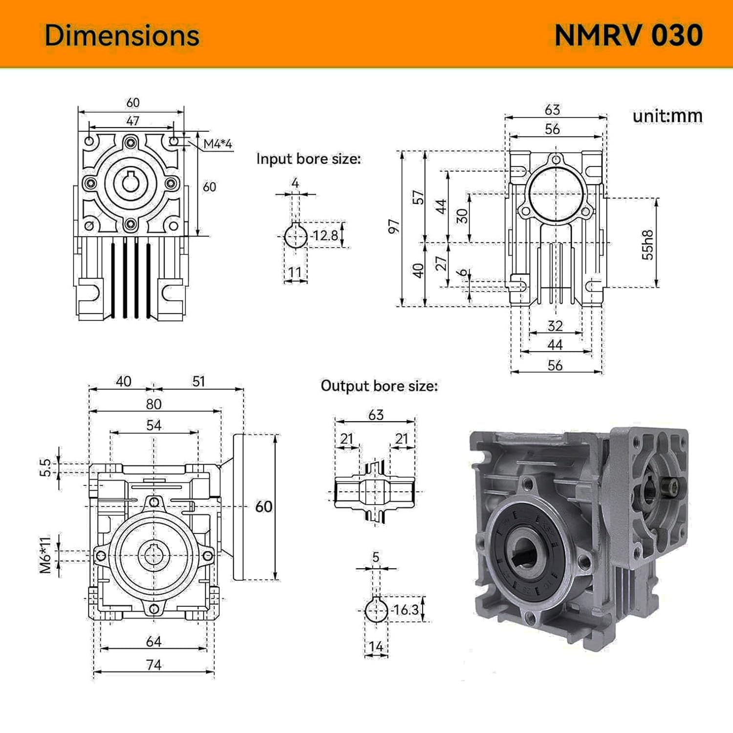 | Included Components | 1PC NMRV030 Worm Gear Gearbox |
